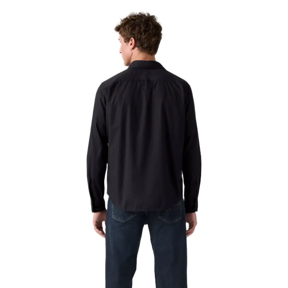 Con un diseño clásico de manga larga, esta camisa presenta un cuello tradicional y un cierre frontal abotonado. Su tejido de textura fina incorpora un bolsillo de parche en el lado izquierdo del pecho con una pequeña etiqueta de la marca, mientras que el corte recto y cómodo la convierte en una prenda ideal para combinar con pantalones casuales o jeans.