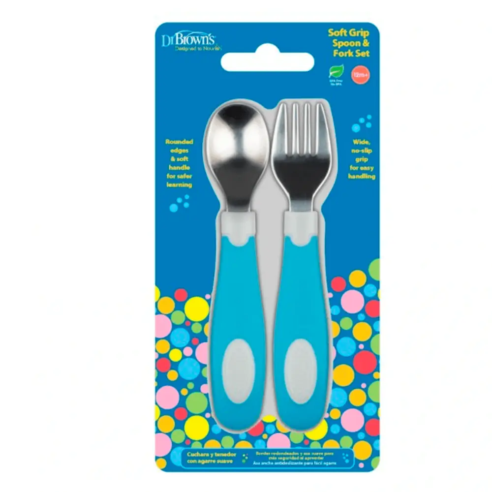 Set de tenedor y cuchara de acero con agarre suave