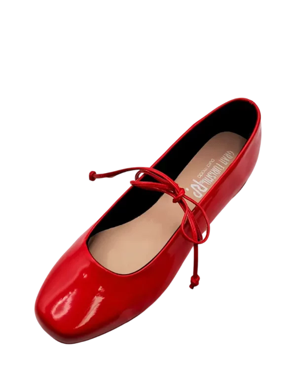 Con un diseño clásico, esta zapatilla presenta un acabado brillante que le confiere un toque elegante. Su puntera cuadrada ofrece una estética moderna y cómoda, mientras que un delicado lazo de cuerda, atado en el empeine, añade un detalle sutil. Ideal para combinar con pantalones, faldas o vestidos, perfecta para crear looks tanto formales como informales.
